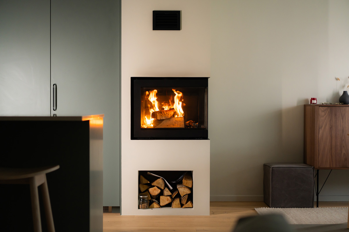 Venus peisinnsats fra M-Design er et moderne vedfyrt ildsted! Velg mellom høyre eller venstre hjørne. Den har lav høyde over glasset, noe som gjør at den krever mindre plass ved innebygging. Venus passer utmerket i eksisterende gruver eller som en oppgradering av gamle peisinnsatser. Den sidehengslede døren (uten hev & senk) gjør bruk og vedpåfylling enkelt og praktisk, samtidig som designet holder fokus på flammene og den naturlige varmen fra peisen.