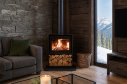 Valgmulighetene er mange, og du bestemmer selv hvordan vedovnen skal monteres. Den kan henges rett på veggen for et moderne, plassbesparende uttrykk. Alternativt kan den stå på en ikke-brennbar base eller benk, som skaper et stabilt og trygt fundament. Ønsker du ekstra funksjonalitet, kan du velge en praktisk sokkel med integrert vedlagring, slik at veden alltid er lett tilgjengelig.