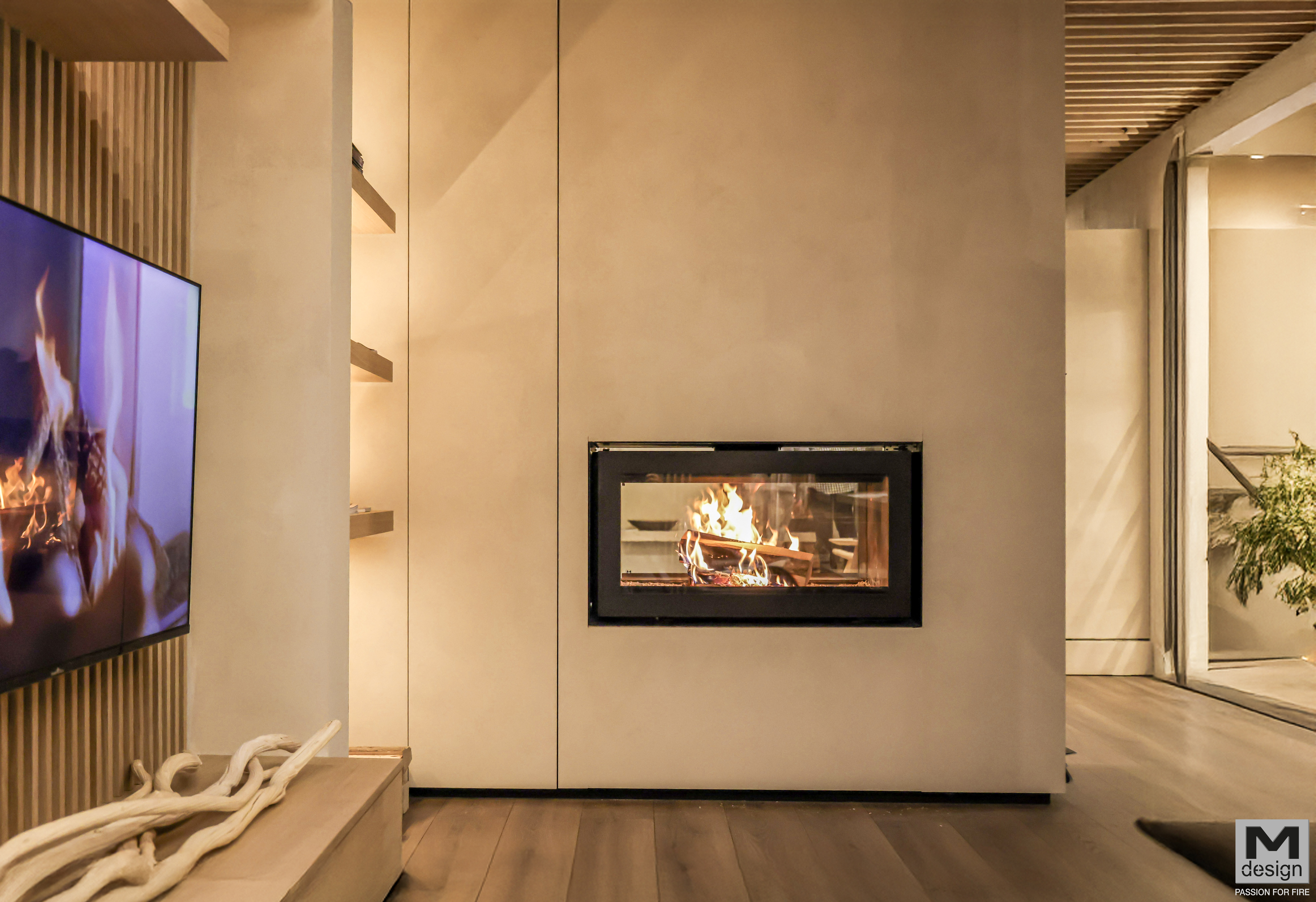 Venus fra M-Design tilhører en serie av vedfyrte innsatser, disse får du både for innbygging og frittstående (Mbox).
